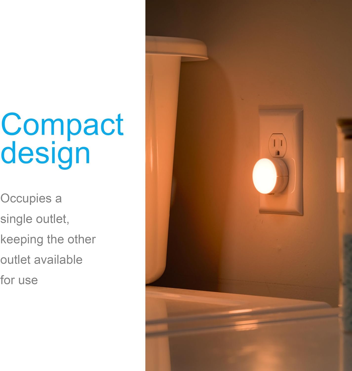 Its compact, low-profile design keeps the second outlet free and fits neatly into any room décor. The soft amber illumination is bright enough to guide you safely through hallways, bathrooms, bedrooms, or nurseries at night — without being intrusive or disrupting your sleep.
