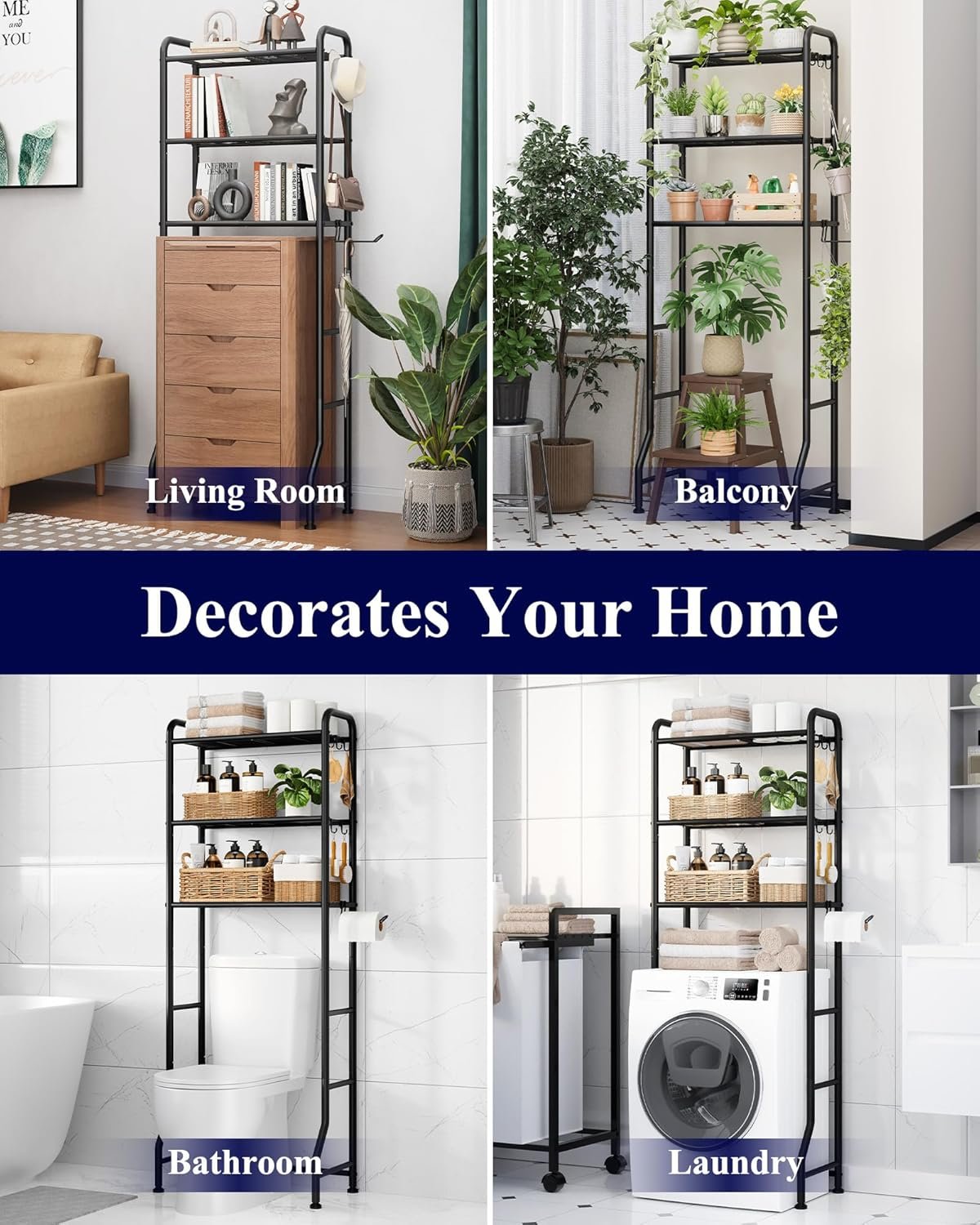 Featuring three spacious tiers, it’s perfect for organizing towels, toiletries, toilet paper, and decorative items while keeping your bathroom clean and clutter-free.