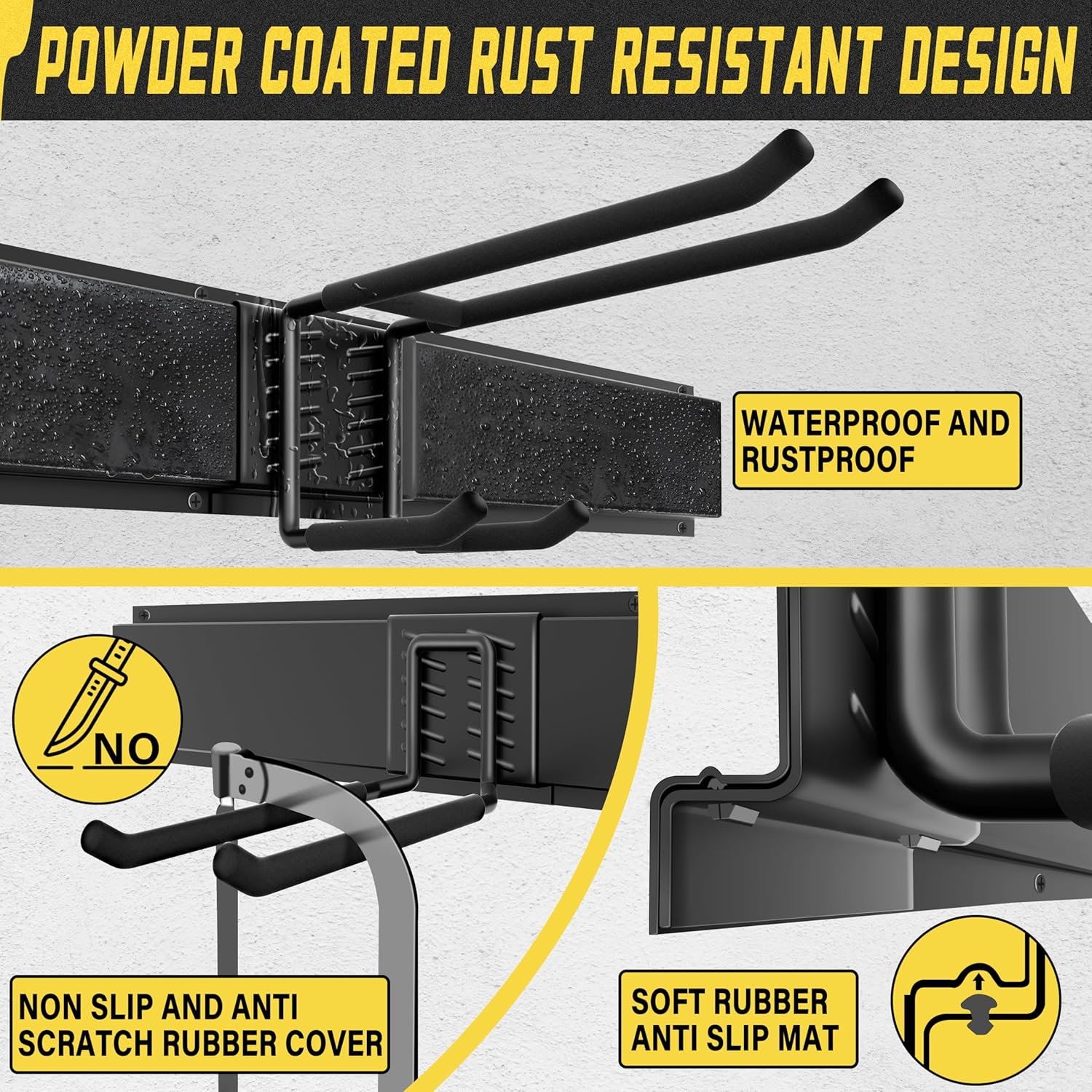 • Non-slip rubber-coated hooks