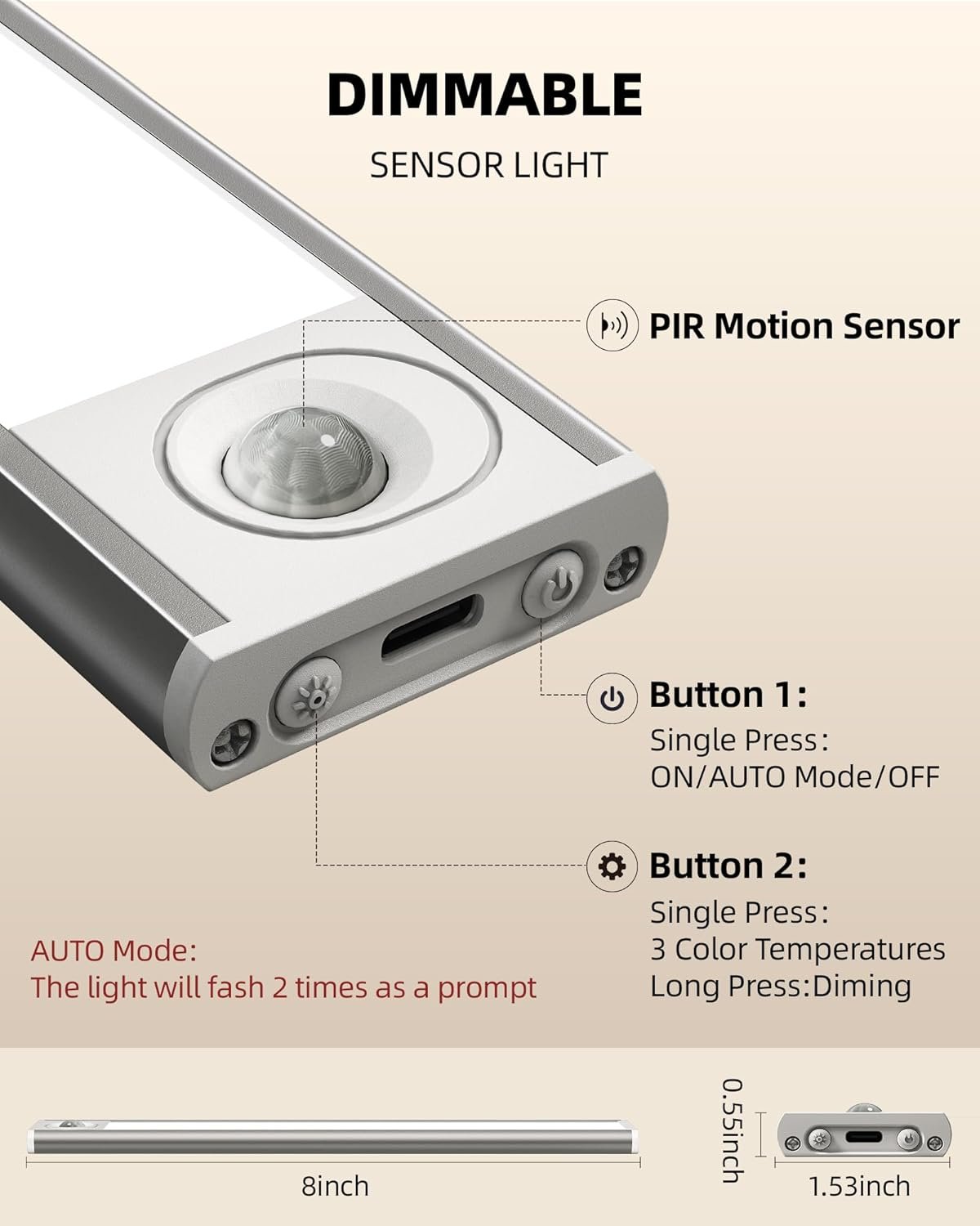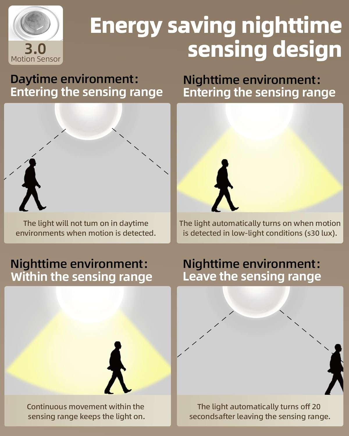 Equipped with a motion sensor, it automatically turns on when movement is detected and turns off after inactivity—perfect for closets, kitchens, hallways, and bathrooms.